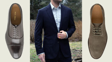 Even at 25% off, Gordon Rush’s made-in-China shoes might be a little over priced. But their styling is just off center enough that guys looking for something different might find the premium worth it. A more modern take on a simple lace up. Has a perfectly shaped toe with a slick Medallion on it, a slightly lighter leather sole, and nice lines.