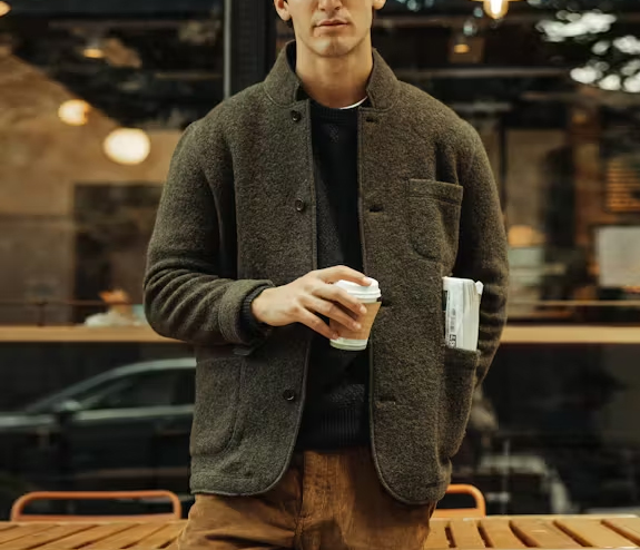Flint and Tinder Boiled Wool Chore Blazer in Loden – $161.50 ($238)