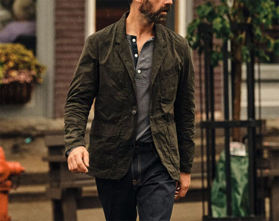 Relwen Waxed Trap Blazer in Black Olive – $238 ($298)