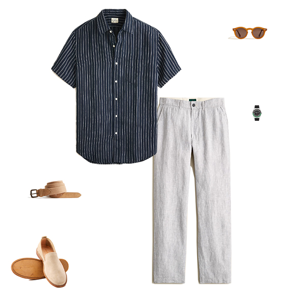 Shirt: Short-sleeve Striped Linen Shirt – $56.50 ($98)