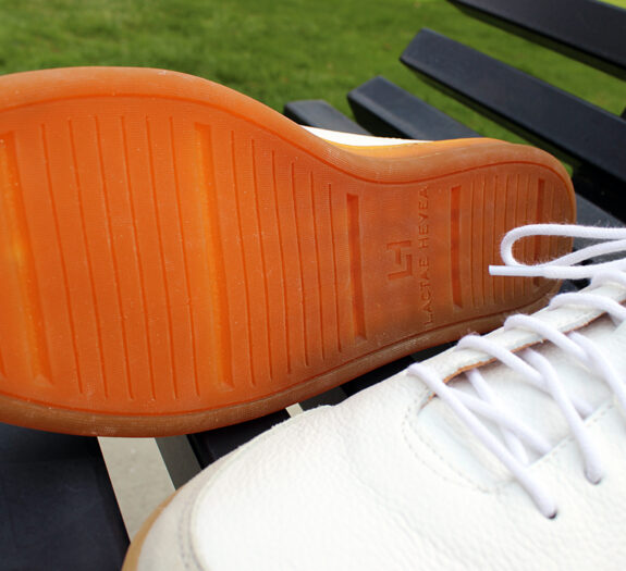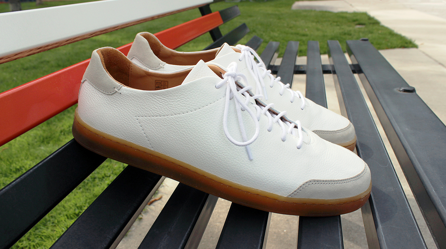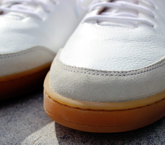 These sneakers are throwbacks. Not just in style, but in the weirdly high quality of materials used. They don’t feel or look like something birthed by spraying magic goo into a highly pressurized mold and subsequently shot out onto a conveyor belt. They’re certainly simple in overall design, but the pebbled leather, suede toe bumper/heel patch, and squishy Lactae Havea natural rubber outsoles all have individual textures which look… real. Like, really real. Because they are real, natural, well-sourced materials.