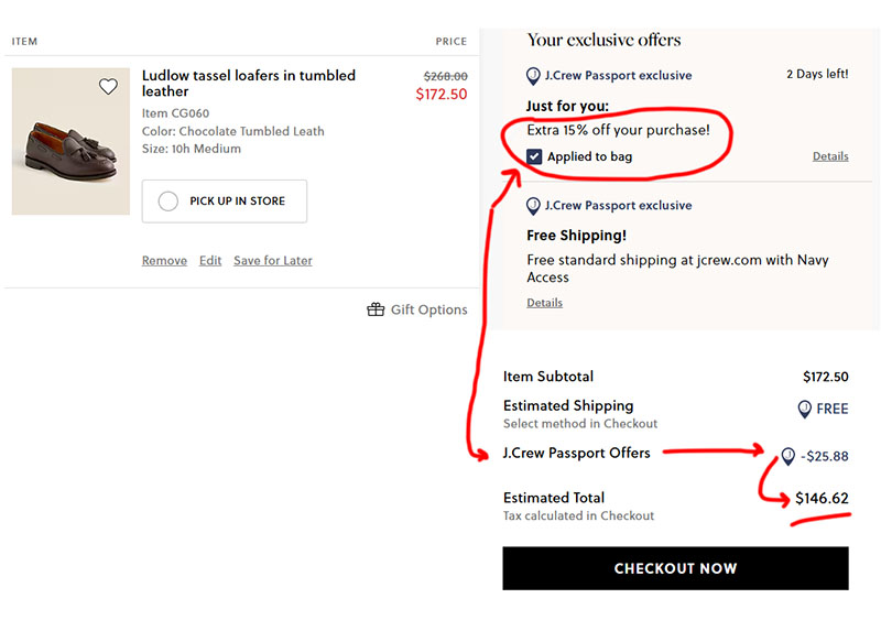 UPDATE: J. Crew has dropped an additional 15% off for their Passport Rewards members. All you have to do is log in and check the little box at checkout. Extra 15% off runs 5/13-5/15/25. Exclusions (lots of exclusions) apply of course.