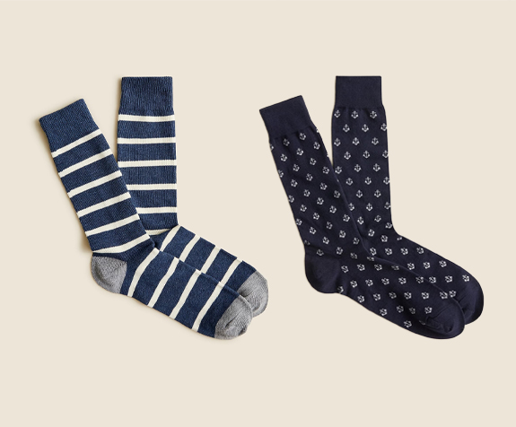 Cotton-blend Socks in stripe – $8.50 or naval anchors – $9.50 ($16.50)