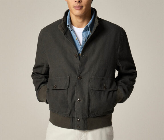Flight jacket in linen-cotton blend – $172.50 ($248) 30% off