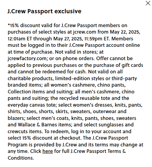 The J. Crew Up to 50% off select full price + additional 50% off final sale styles w/ code SHOPSALE summer kickoff event is set to expire Tuesday 5/27/25.