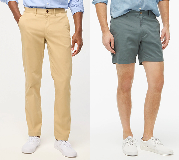 - Flex Chino Shorts in 5″, 7″, or 9″ inseams – $29.95 ($69.50) ditto. lots of colors