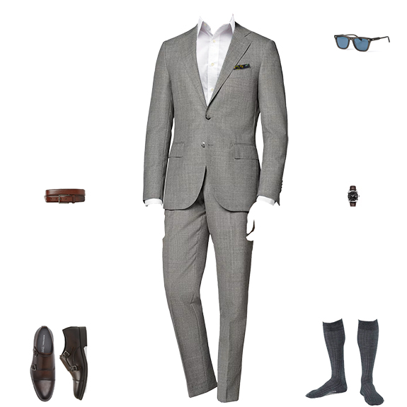 The Suit: Suitsupply Grey Tropical Wool Suit – $499. Ships and returns for free. Vitale Barberis Canonico Italian tropical wool specifically woven for a lighter weight and extra breathability. Plus the color & styling are versatile enough that the jacket and trousers can easily be broken up and worn with other items, separately, if you’re traveling to the wedding and need to pack light. Wear the trousers with a polo for lunch. Wear the jacket with contrasting chinos for the rehearsal dinner. Lots of options. Do know that Suitsupply makes their suits with functioning sleeve cuff buttons. Which is a neat little detail if the sleeves hit your wrists just right. If not, they can be a real (expensive) pain to tailor. But again, they ship and return for free.