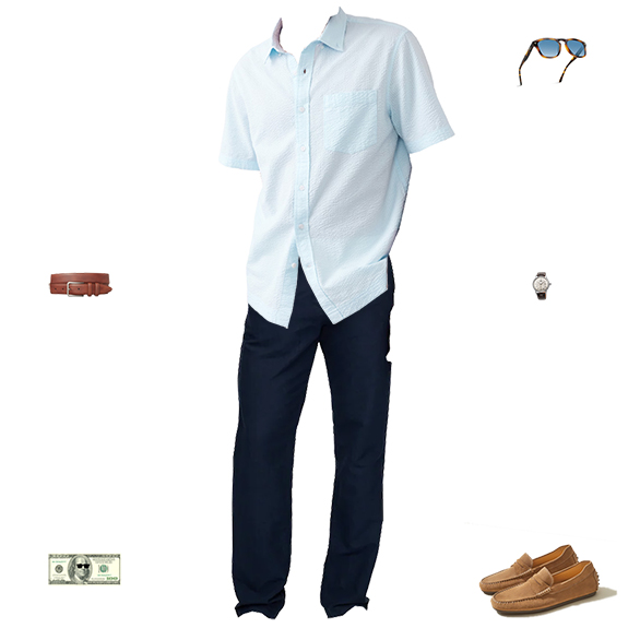 The Shirt: BR Factory Seersucker Shirt – $35 ($42). Along with the cool visual, the seersucker’s legendary “pucker” texture helps air breeze through by ever so slightly raising the fabric up and away from your skin. That’ll aide in cooling.