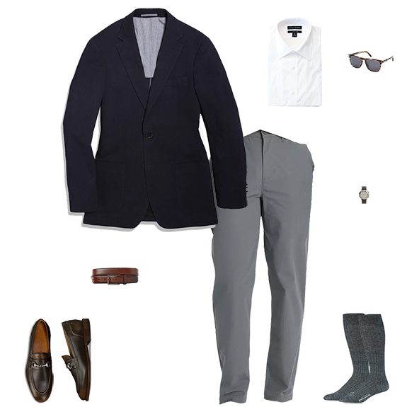 The Sportcoat: The Tie Bar Navy Seersucker Jacket – $195. Lightweight seersucker, half lined in the back, and affordable.