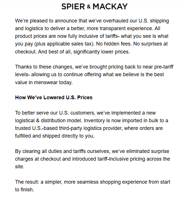 Spier 20% off select (+ their new tariff strategy significantly lowers prices from immediate post-de-minimis-expiration period)