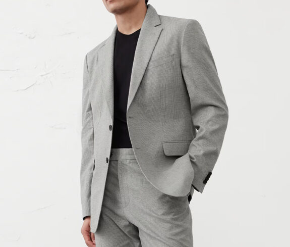 Seems like you could do a lot worse for a summery suit. Versatile mid leaning lighter gray color with a micro-houndstooth pattern. 55% linen, 43% cotton, 2% elastane spandex. So it’s a linen base with a healthy dose of cotton to hopefully keep some of the wrinkling down to a reasonable level. Jacket is unlined in the back, which is ideal for this sort of warm weather suit. Each piece should excel when worn with other stuff (jacket worn as a sportcoat, trousers worn with a polo or even a smart t-shirt).