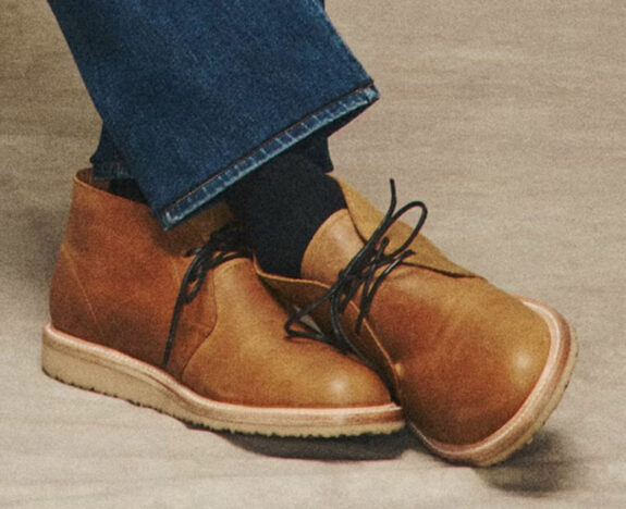 From Huckberry’s deservedly well liked house brand Rhodes. Goodyear welted. Looks like the uppers are a waxed suede. Comes with an extra set of black, flat waxed laces. Would look great with chinos and a polo, jeans and a t-shirt, etc. A step up from Clarks Bushacres for sure.