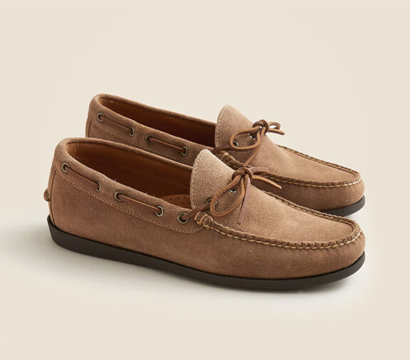 If to you, boat shoes are too preppy and drivers don’t have enough structure/support… try camp mocs. Or as J. Crew likes to call their version, “Lake shoes.” They’re summery, they slip on, and the neutral suede means they’ll go with just about everything. If memory serves these haven’t gone on sale much this season. So 30% off here in the height of slip-ons weather seems quite nice.