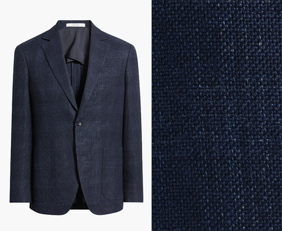 Butterfly lined, deep blue with a subtle pattern, and the 58% wool / 42% linen blend seems perfect for summer. That’s a nice combination. Sleeve cuff buttons should be non-functioning for easy/cheaper tailoring. Nordstrom has been doing a really nice job with their sportcoats lately. Part of their big anniversary sale. Ships & returns for free.