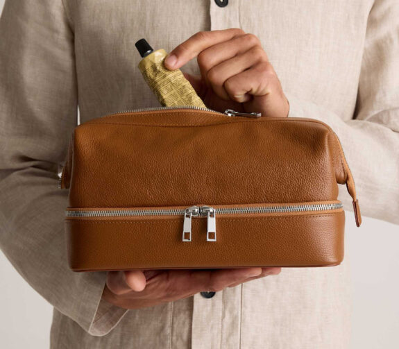 - Quince Italian Leather Dual Compartment Toiletry Bag – $69.90