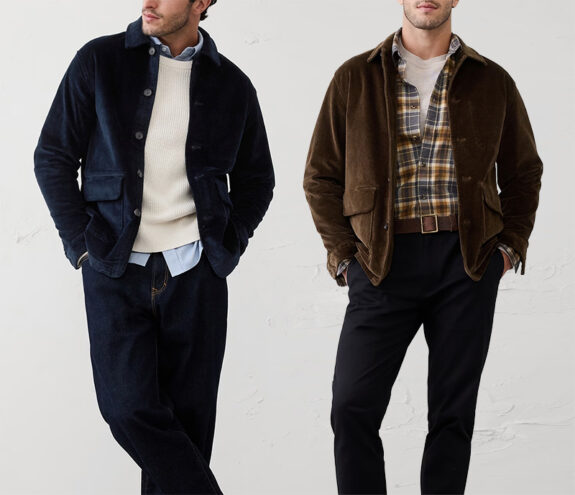 Chore jackets are terrific because while they can act as light outwear, they really excel as a super casual “sportcoat” worn over a t-shirt, henley, or polo. Here BR Factory has made these in corduroy, which is a fall-favorite-fabric AND looks especially good with jeans or chinos.