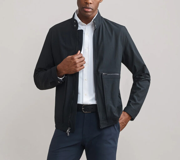 A younger, more modern Harrington styled jacket. The problem with some classic versions of the ubiquitous Harrington is that they can look a little… “I’m headed to the senior center clubhouse for pinochle.” Which really, shouldn’t we all be so lucky if that’s our future? For now though, this version from Rhone ain’t those. It’s almost… mean looking. Not in a bad way. It just doesn’t look like there’s a bag of Werther’s Original stashed in the pockets, unlike Gramps and his jacket.