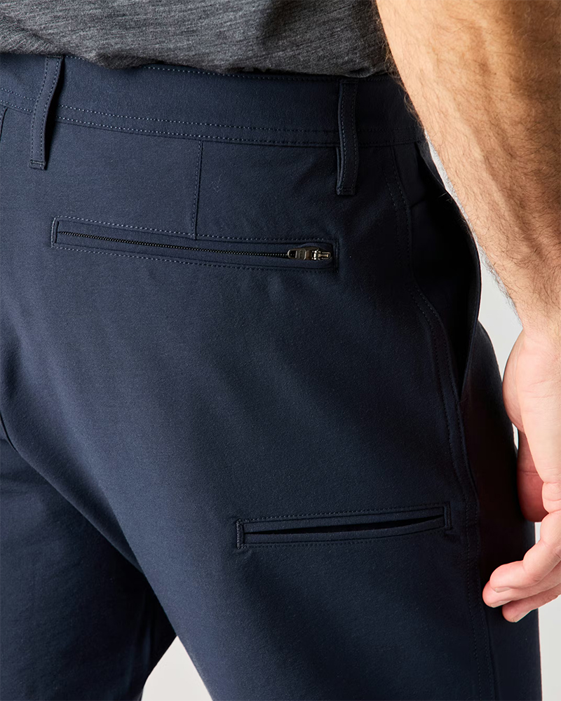 Spendy but exceptional. Perfect for travel, and can pass as a smart pair of trousers even with the (ridiculously convenient) welt phone pocket on the back right leg. Gusset for ease of movement. Fabric is a 47% Merino Wool, 33% Nylon, 14% Polyester, 6% Elastane blend that moves great, but does make a light “swish swish” sound. That said (or heard?)… they’re the pants you may want to be wearing for the zombie apocalypse, the next time you’re moving house, or a long travel day with a business meeting at the tail end of it. And for a fit perspective, know that a 32×32 straight fit works for my 5’10″/180 frame after a quick trip to the tailor for a 1″ hemming on the legs.