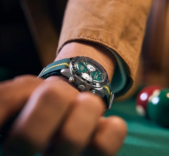 Reverse panda, green dial, and the case diameter is under 40mm. That’s a lot of “on trend” details all at once. Might be on sale because it looks a little “too” green with the stock strap, but imagine it on an aftermarket black and gray striped strap, or even a brown or black leather rally style.