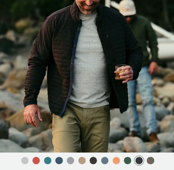 Another bestseller from Relwen. Less “field” than the Tanker, more casual-city-to-outdoorsy quilted. Water-resistant, lightly insulated (60 gram), moves well, and breathes. Great for layering, or on its own during transitional weather.