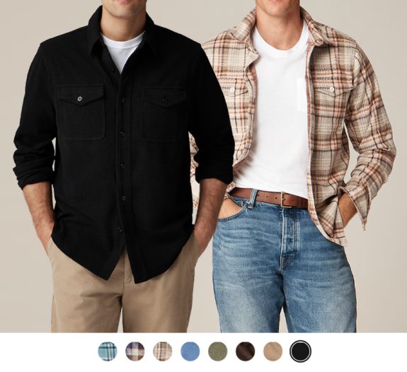 A customer favorite. Their standard weight henleys. Henleys are great, and J. Crew’s vintage-wash fabric has its fans. Not super thick or bulky. Eight colors to choose from.