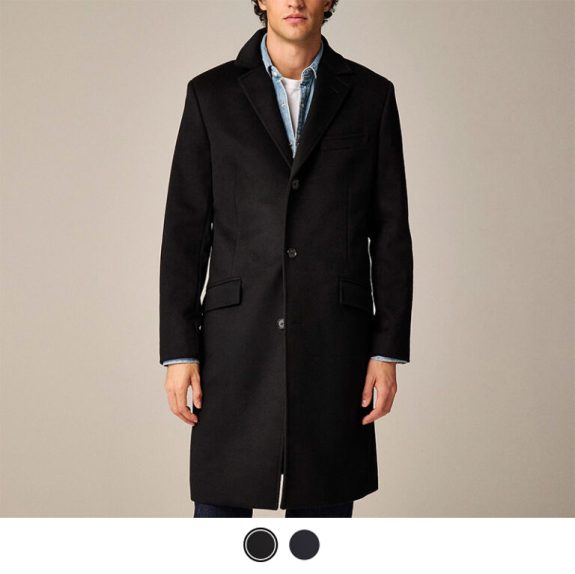 Black or navy. Something to go over a suit, or frankly, anything than else. Topcoats look just as good over a sweater and jeans as they do over a suit. Lots of class in a simple, 95% wool/5% cashmere package.