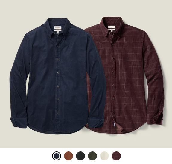 Fall/winter fabric, in button-down form. Six colors. Ships and returns for free as of post time.