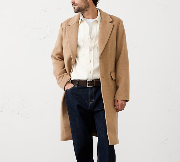 From here it looks like a winter-weight coat cut in a Mac style… not a true Mac (lighter weight/3 season) cut in a water resistant wool material that’s akin more to suiting fabrics. The latter does exist out there. And they’re spendy. They’re nice, those lighter weight wool macs. This doesn’t appear to be that though. Still. Looks good.