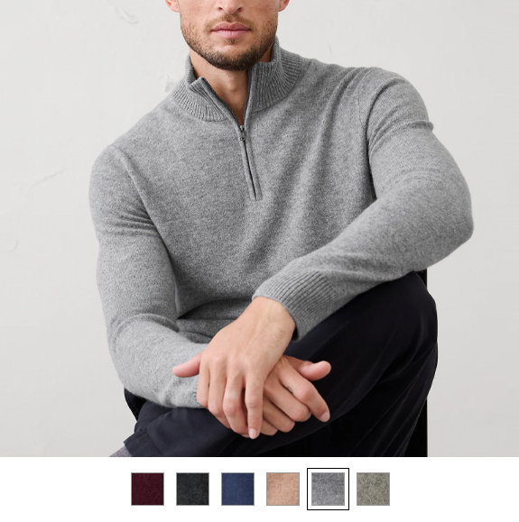 80% Wool / 20% Cashmere Quarter-Zips – $57.60 ($160) 64% off
