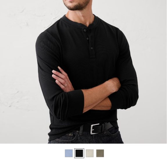 Standard fit mini ribbed henley – $23.40 ($65) 64% off