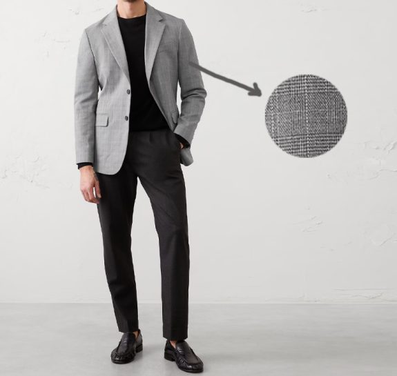 - Read the fabric/care section of each item, and try to avoid the all synthetic cheap stuff (such as this all synthetic suit jacket).