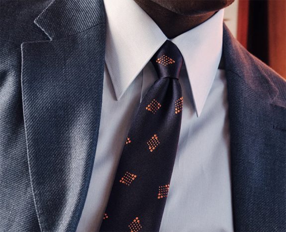 A splurge, but wedding season is coming up, and if you want to wear something that looks and feels better than just another cheap necktie, then The Tie Bar’s Italian collection is worth considering. Tie above is interesting but also subtle. 100% silk by Italy’s Tessitura Attilio Bottinelli.