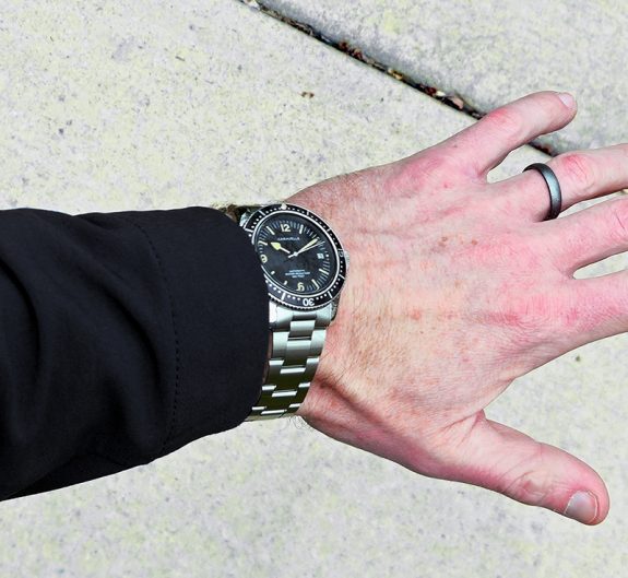 Bottom line: This thing is legit. 39mm doesn’t wear too small at all thanks to the 20mm bracelet, which doesn’t aggressively taper. Bezel feels (read: clicks/rotates) great. Styling is terrific. It’s a diver/sports watch, but it’s subdued enough that you could totally wear it with a suit. The bracelet’s quick release pins are extra nice, so swapping out the bracelet for a NATO or leather strap will be super easy. And while there’s no on-the-fly micro adjust, it does come with a half link on the bracelet, as well as 3 micro-adjust pin-holes in the clasp.