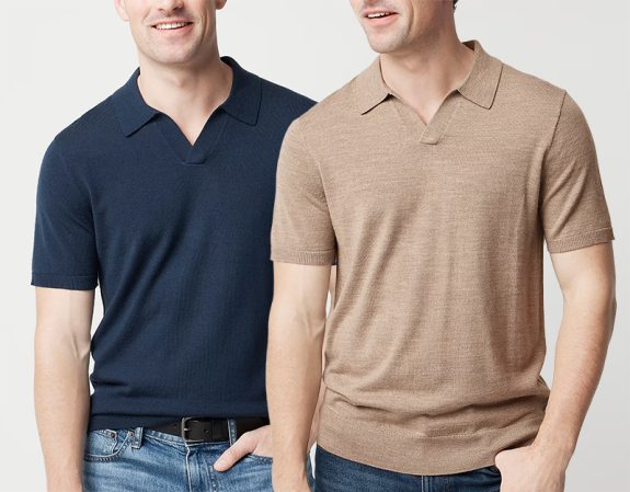 Merino wool-blend johnny-collar sweater-polos – $17.39 FINAL ($57.99)