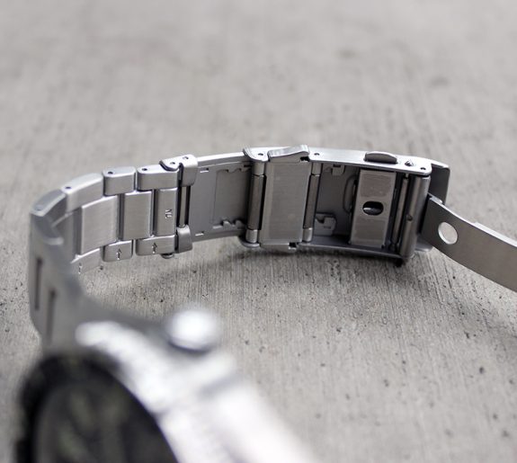 - No quick-release bracelet or lug holes, so changing out the bracelet for a strap will require a spring-bar tool.