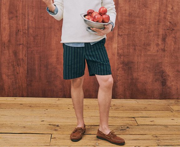 8″ Classic chambray short in stripe – $68.60 ($98)