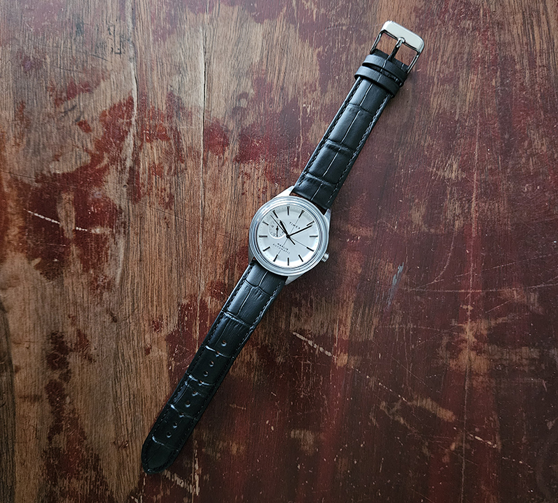 Full review here. 38mm case should please plenty. Automatic movement. Retro-futuristic design which is quiet enough to blend in. It also looks surprisingly great on an (after market) leather strap.